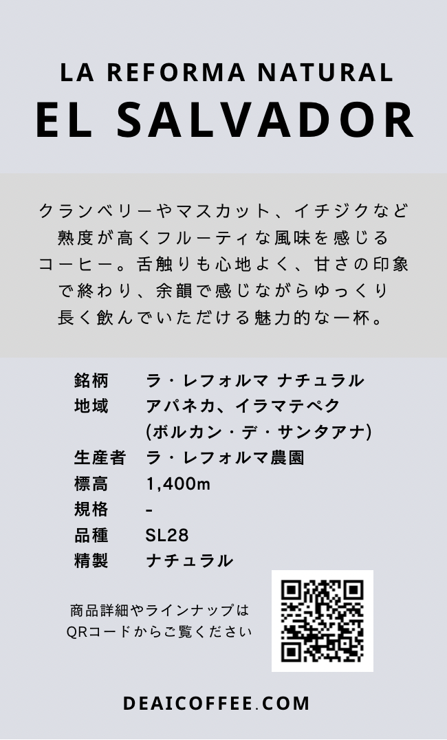 〔エルサルバドル/中浅煎り〕ラ・レフォルマ ナチュラル/ナチュラル