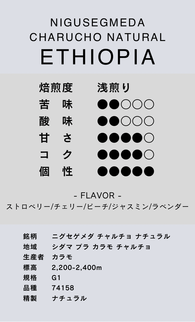 〔エチオピア/浅煎り〕ニグセゲメダ チャルチョ ナチュラル/ナチュラル