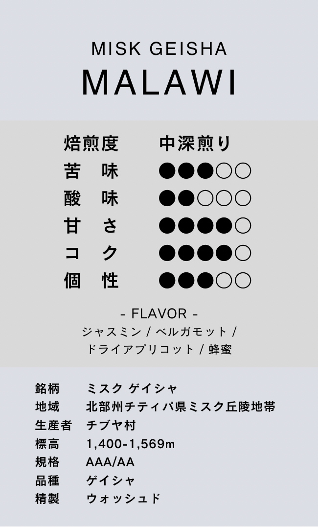〔マラウイ/中深煎り〕ミスク ゲイシャ/ウォッシュド